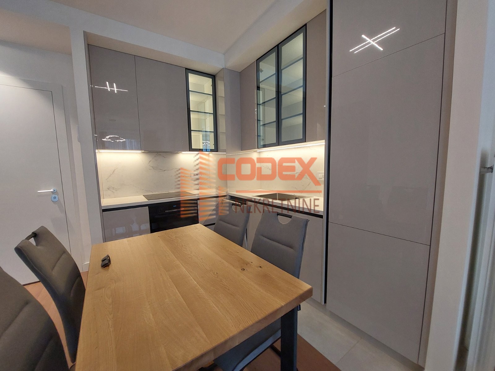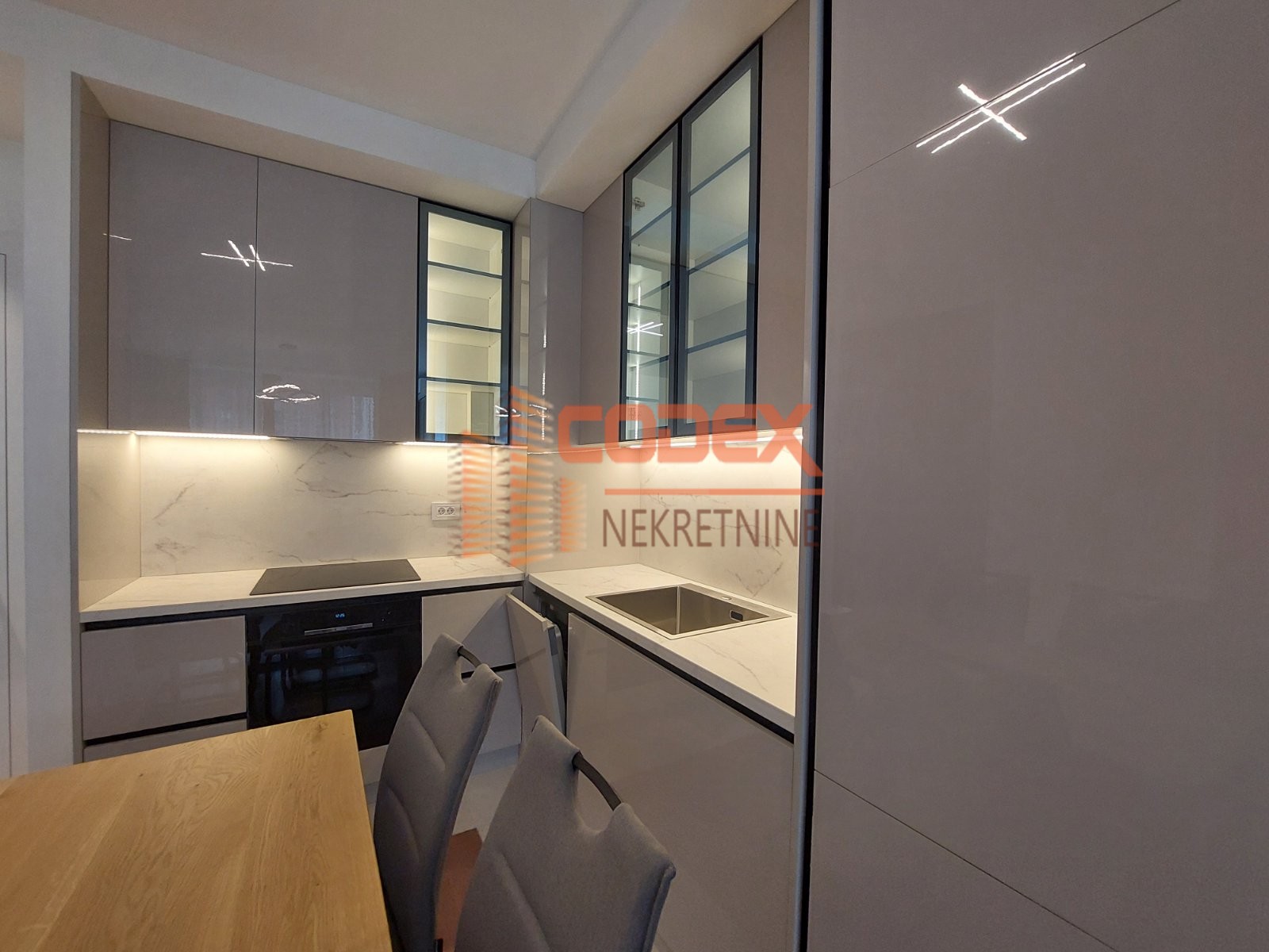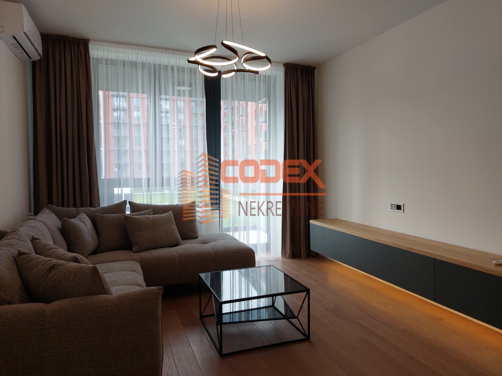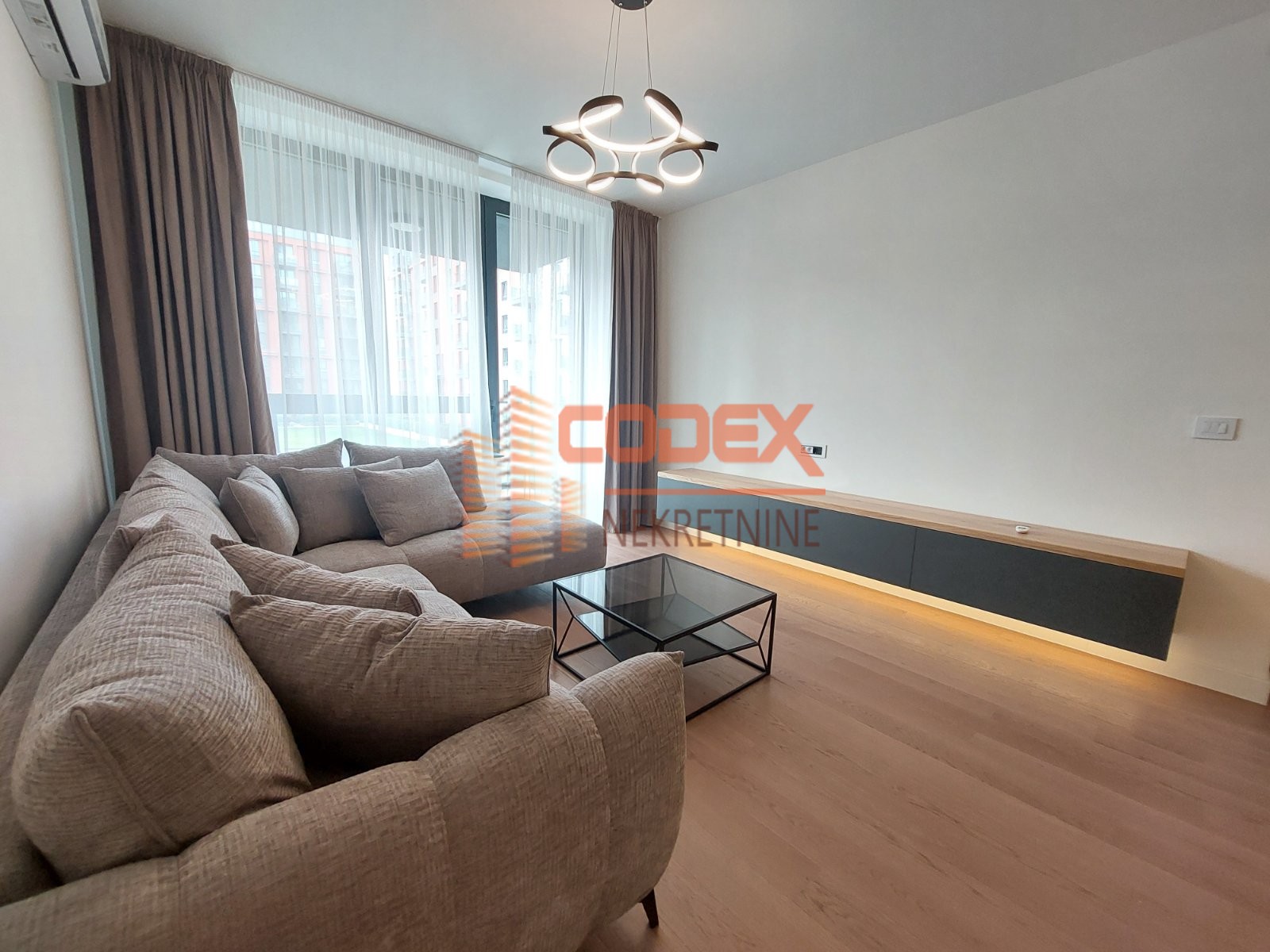Moderno namesten ,prostran, sa velikim dnevnim boravkom sa kuhinjom i trpezarijom -open space, dve spavace sobe od koje jedna master spavaca soba, dva kupatila i terasa.