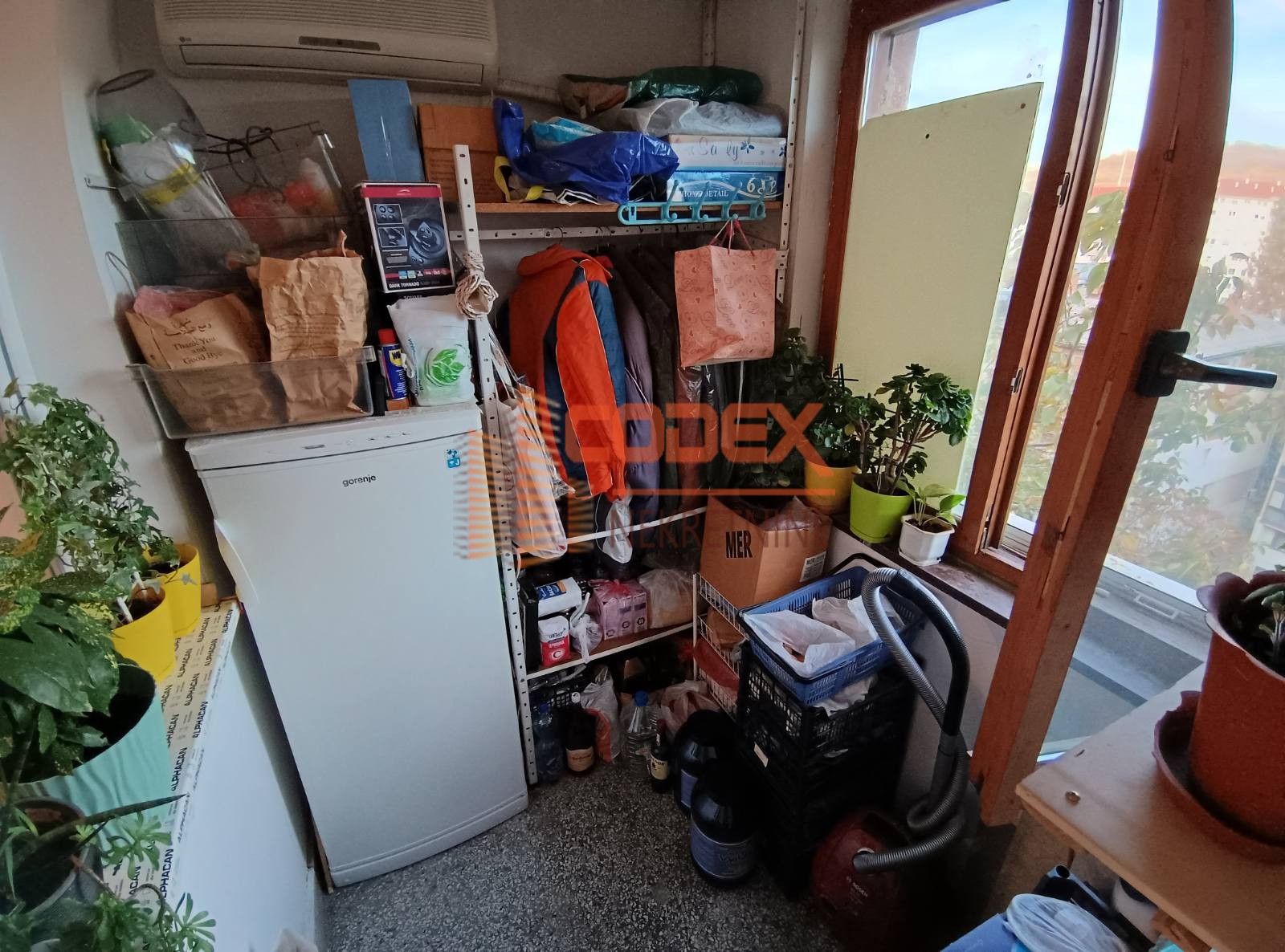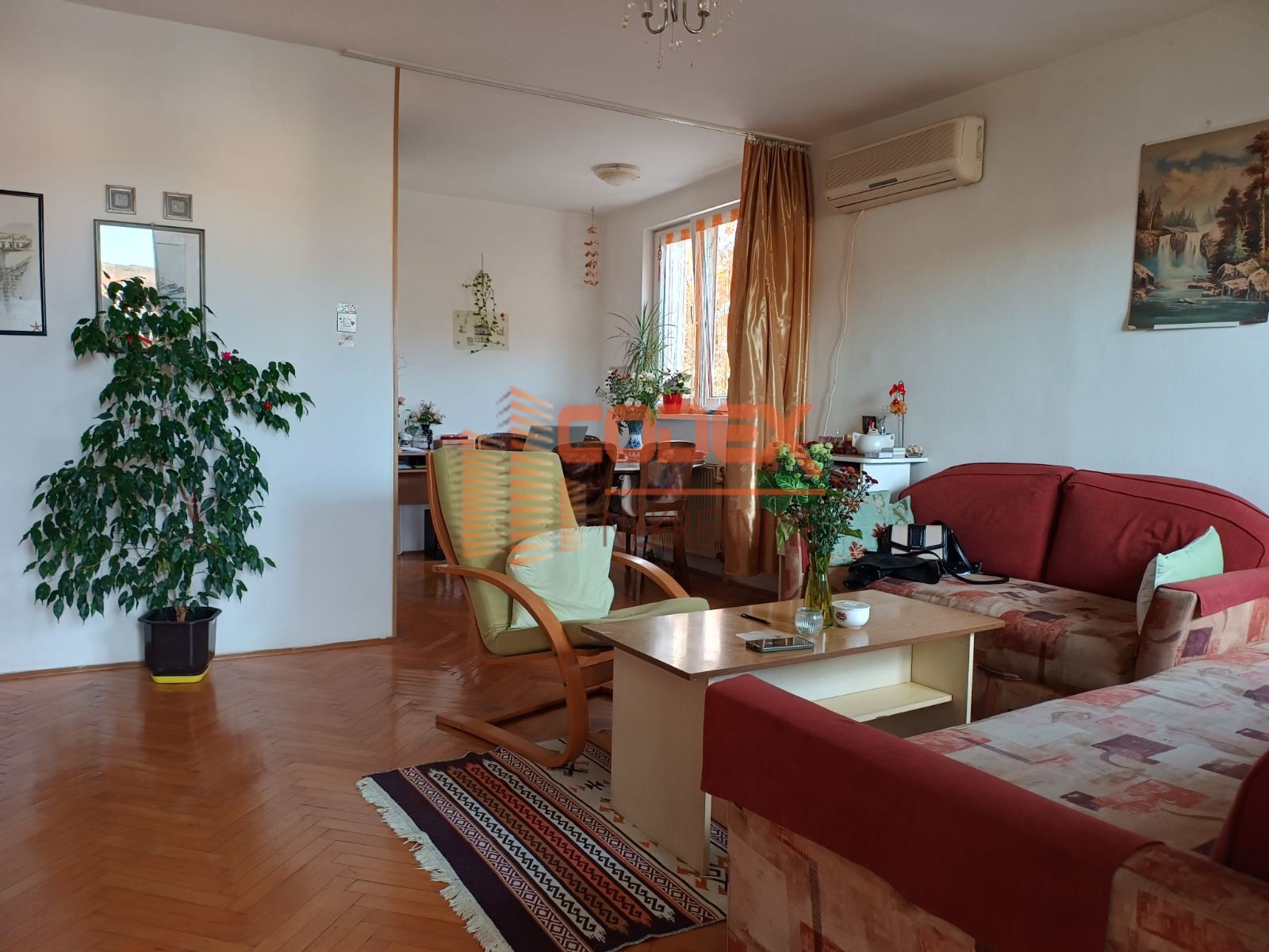 Prostorije: prostran dnevni boravak sa izlaskom na lođu, odvojena kuhinja sa trpezarijom, dve spavaće sobe, kupatilo i posebno toalet.
